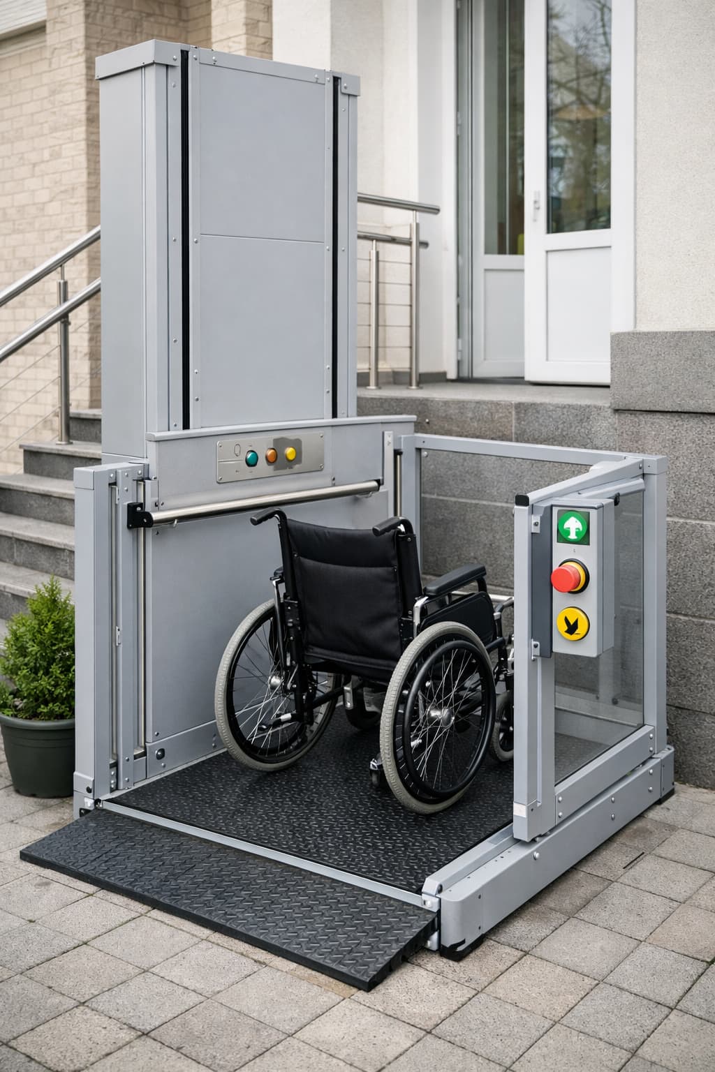 საიმედო და უსაფრთხო გადაწყვეტილება არქიტექტურული ბარიერების დასაძლევად. ლიფტი იდეალურია როგორც შიდა, ასევე გარე მონტაჟისთვის. აღჭურვილია უსაფრთხოების სენსორებით, ავარიული გაჩერების ღილაკით და რბილი სვლის სისტემით.